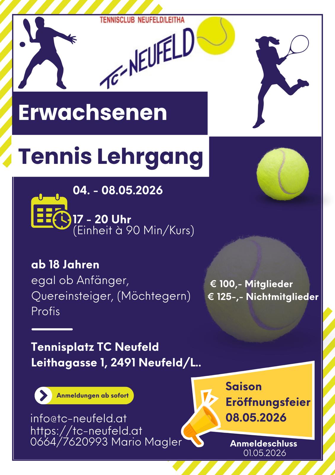 Anmeldung an info@tc-neufeld.at oder direkt über die Online Anmeldung.